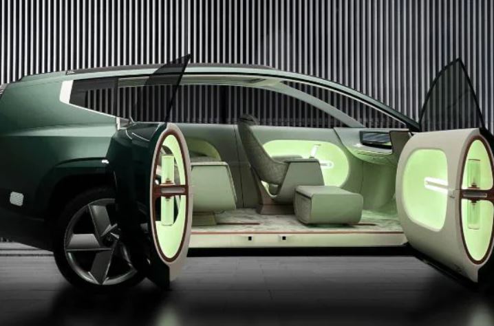 그리고 플랫 플로어는 3열까지 확장하여 대부분의 차량에 적용되어 있는 1열, 2열, 3열 시트에 대한 고정관념을 깨고 유동적인 레이아웃을 만들었습니다. B필러가 없는 필러 리스 도어가 자동으로 열려 더욱 넓고 아늑한 라운지형의 내부 공간을 만들어줍니다. 실제 양산형 아이오닉7으로 출시할 경우 이와 같은 시트 구성은 안전상의 이유로 설치가 어려울 수 있으나 B필러 제거와 도어 방식, 그리고 넓은 실내 공간은 충분히 반영이 될 수 있을 것으로 예상됩니다.